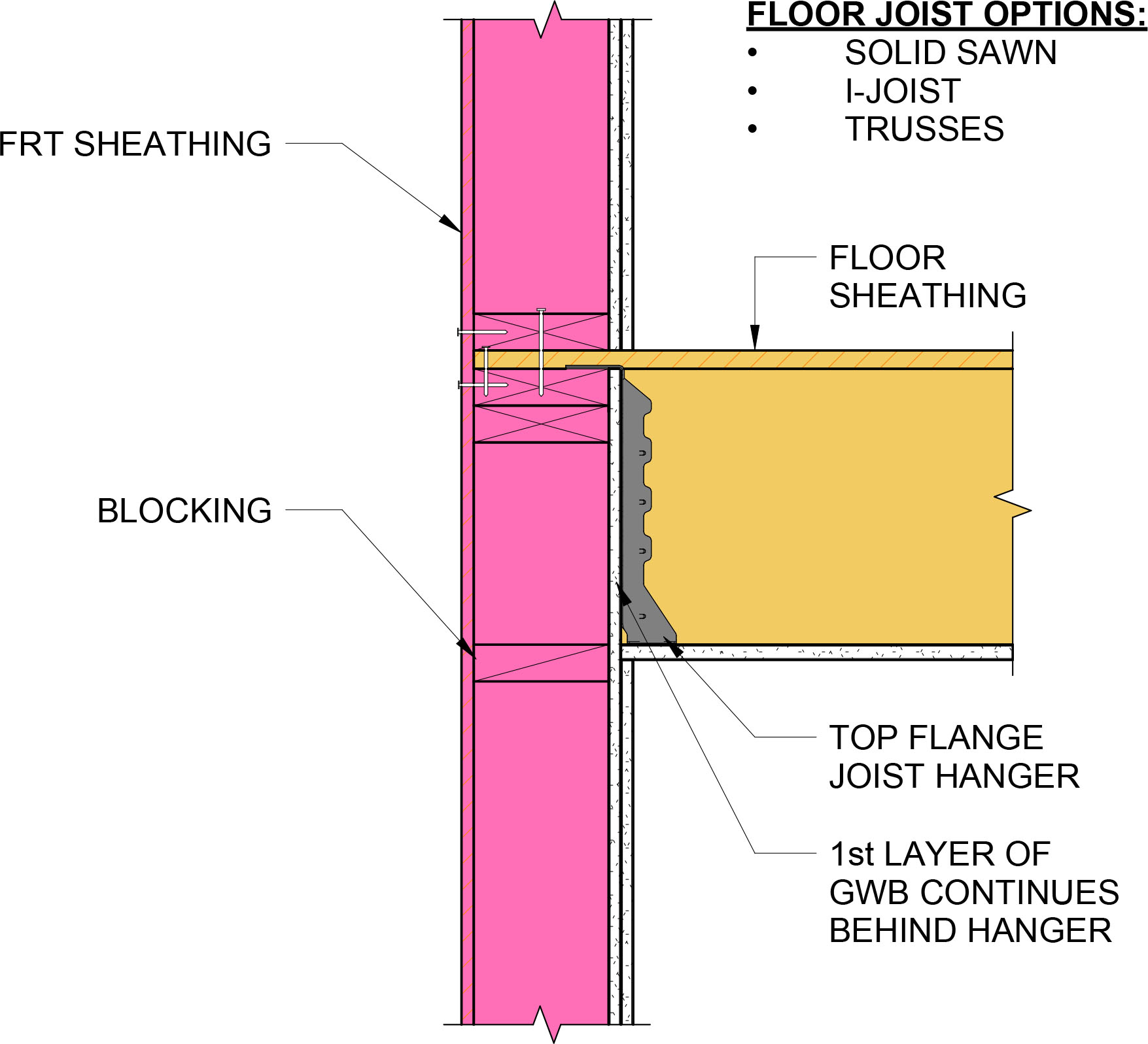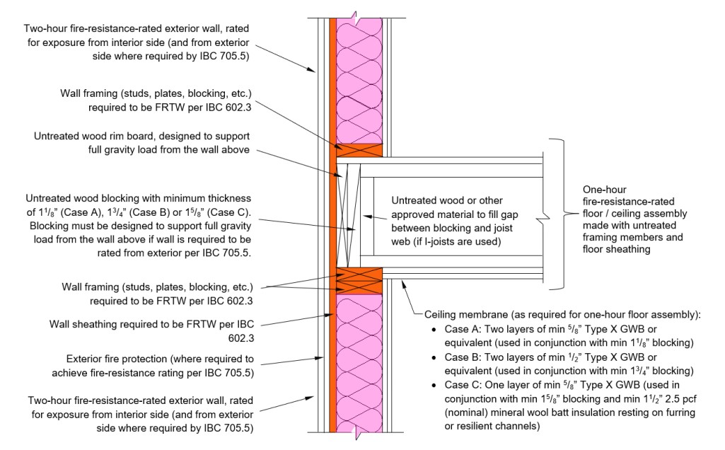 Figure 3: (from AWC DCA-3, Figure 1A): Example Detail for Type III-A exterior wall-floor intersection with rim board and blocking